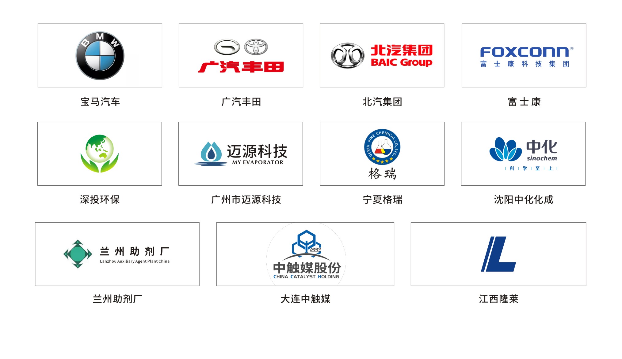 目前,公司已在成都、大連、蘇州、內(nèi)蒙古等地設立了辦事機構(gòu),服務的客戶包括深投環(huán)保、寶馬汽車、富士康、廈門嘉戎、寧夏格瑞,蘭州助劑廠、江西隆萊、大連中觸媒等行業(yè)內(nèi)領(lǐng)頭企業(yè),在國內(nèi)落地項目有170多家。